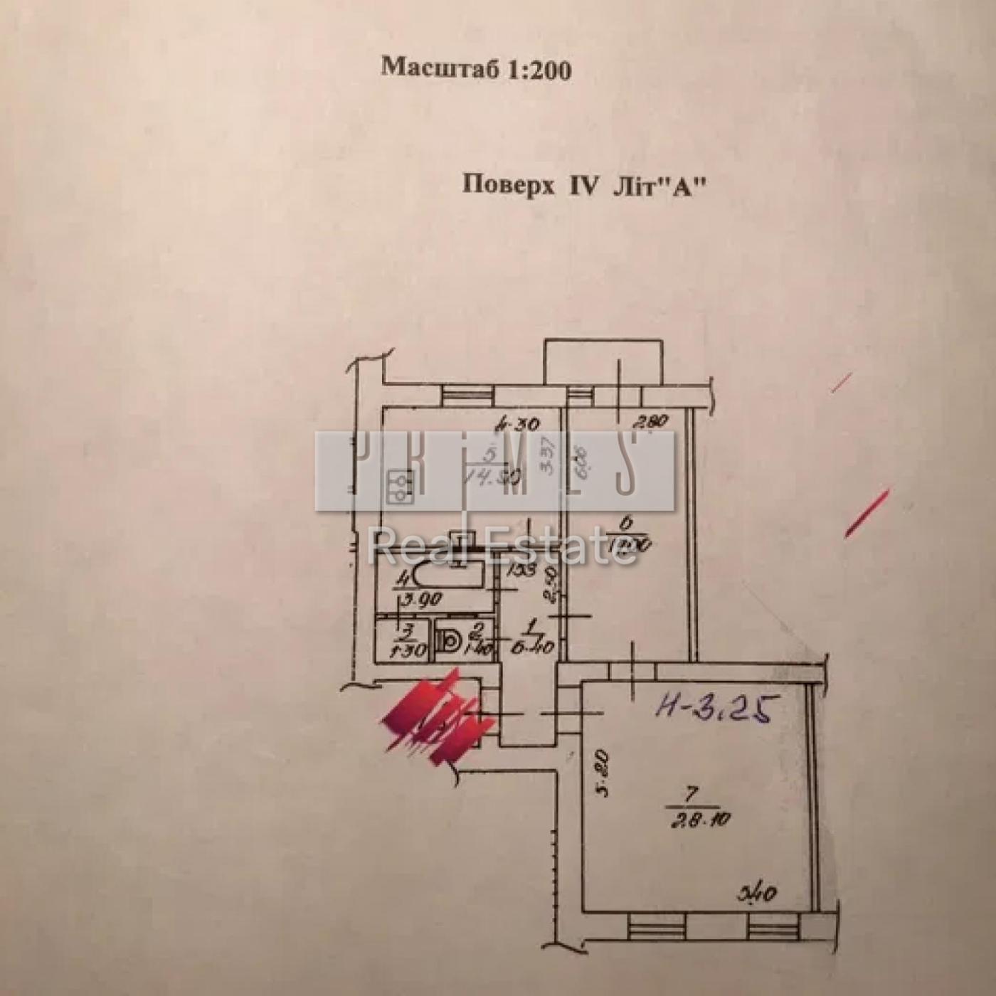 Квартира розташована на 4-му поверсі цегляного будинку, загальна площа складає 75.6...