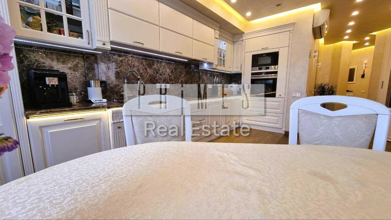 Простора 135 кв.м. квартира в престижному будинку на Вишгородській, 45 – це поєднання сучасного дизайну, високоякісних матеріалів та ідеального розташування. Великі панорамні вікна наповнюють інтер’єр світлом і відкривають вид на мальовничий парк, створюючи атмосферу затишку та статусності.